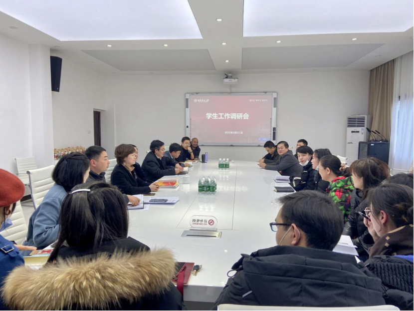 会上,校团委书记龚舒就校团委与学生会改革、社会实践活动、社团管理、智慧团建等工作等进行了汇报,学生工作部(处)副部(处)长彭露、罗元别就学生心理健康教育、资助工作、武装部工作和学生思想政治教育、寒假留校及疫情防控工作汇报了有关情况,向发意就学生工作近年来主要做法、成效及辅导员队伍建设作了总结性汇报。