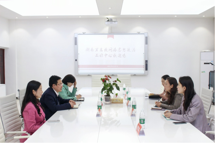 (通讯员 杨涛 赵一奇)4月27日上午,新华社新闻信息中心湖南中心主任丁莎、媒体资源传播部主任赵瑾、运营总监申诗逸一行来湖南省高校网络思想政治工作中心交流工作。湖南省高校网络思想政治工作中心秘书长、学生工作部(处)部(处)长向发意,副部(处)长彭露,学工处网络教育办公室主任陈丽荣参与交流,交流会议由彭露主持。