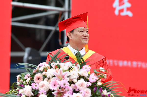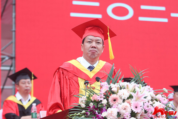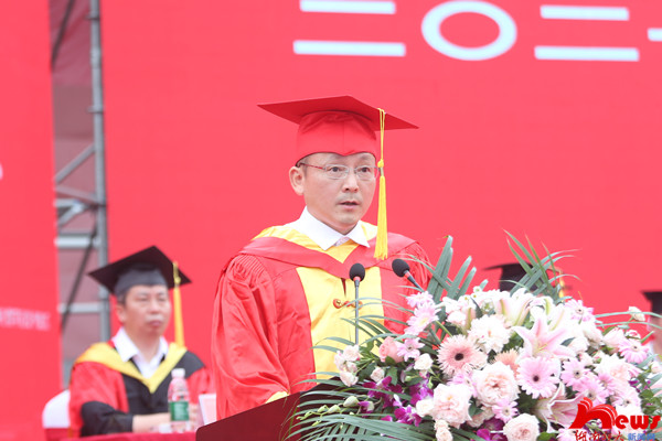 校长刘起军教授代表学校向重返母校的2020届毕业生表示欢迎,向圆满完成学业的2021届毕业生表示诚挚祝贺。他回顾了毕业生们在师大与学校共同成长和收获的时光,表达了对同学们取得成绩的自豪和对大家学成离校的依依不舍。在党的百年华诞即将到来之际,刘起军叮嘱同学们,作为生逢其时的新青年,一要厚植家国情怀,强化使命担当。家国情怀是我们中华民族的优良传统,也是师大的精神血脉。同学们要把家国情怀体现在爱国情、强国志、报国行上,在时代洪流和历史伟业中书写不平凡的人生。二要接续奋斗征程,谱写发展新篇。希望同学们把国家所需、人民所盼化作勇毅前行的不竭动力,用开拓创新为青春抹上最鲜亮的底色,用接续奋斗为青春打起最激昂的节拍,以青春之我,奋斗之我,建功新时代,谱写新篇章。三要锤炼坚毅品质,成就美好人生。他希望同学们学会用坚韧和乐观应对逆境与挫折,用爱和热情回报国家与社会,用坚毅的品质征服星辰大海,追寻诗与远方,成就美好人生。