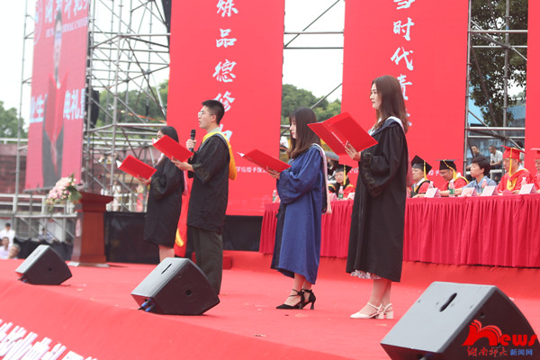 威廉希尔中文网站平台医学院护理学专业2008届毕业生、湖南省人民医院急诊重症监护室护士长、全国优秀共产党员、全国抗击新冠肺炎疫情先进个人,徐芙蓉校友致辞。她回忆了自己在师大求学的美好岁月,表达了对母校和毕业生的衷心祝愿,分享了个人作为抗疫一线志愿者的经历,鼓励学弟学妹们心存“家国有难,舍我其谁”的责任感,珍惜生活中的每一份经历,珍藏每一份感悟,将来在各自的岗位中成就闪闪发光的自己。