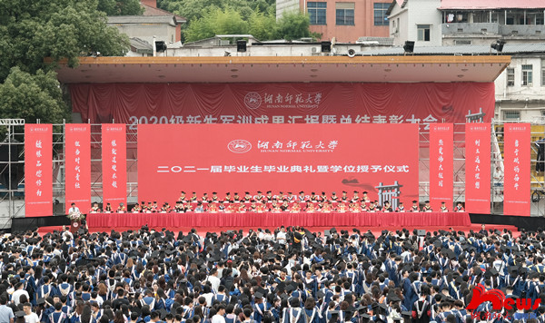 仪式之前,学校举行2021届毕业典礼文艺演出,音乐学院师生代表带来的《民乐合奏》《起风了》《追寻》等表演展示了师大学子的蓬勃朝气,彰显了师大人对仁爱精勤这一校训的永恒追求和以天下为己任、以报国为夙求的良好精神风貌。