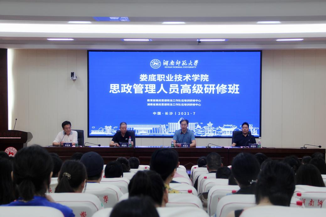 (通讯员 杨涛)2021年7月8日上午,娄底职业技术学院思政管理人员高级研修班开班仪式在威廉希尔中文网站平台中和讲堂举行。娄底职业技术学院党委书记朱忠义,党委委员、副校长申晓伟,威廉希尔中文网站平台党委副书记周俊武出席开班仪式。威廉希尔中文网站平台学生工作部部长向发意担任主持。
