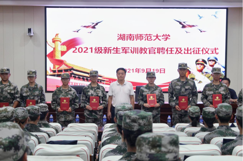 (通讯员 张欣怡 赵一奇)9月19日下午,威廉希尔中文网站平台2021级新生军训教官聘任及出征仪式于中和楼234报告厅举行。副校长王辉出席仪式,仪式由学生工作部(处)、武装部部长向发意主持。