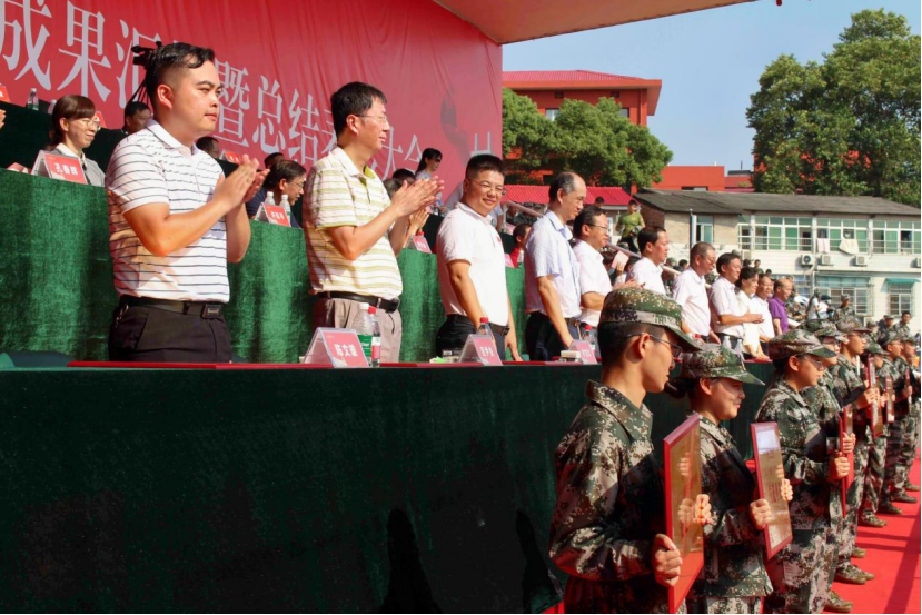 学生工作部(处)、武装部副部长彭露宣布了内务卫生评比、军训宣传评比、军训队列评比以及军训特色表演先进单位、优秀单位,优秀教官、辅导员、班导助理等获奖情况。就座于主席台前排的领导嘉宾为获奖单位颁奖。