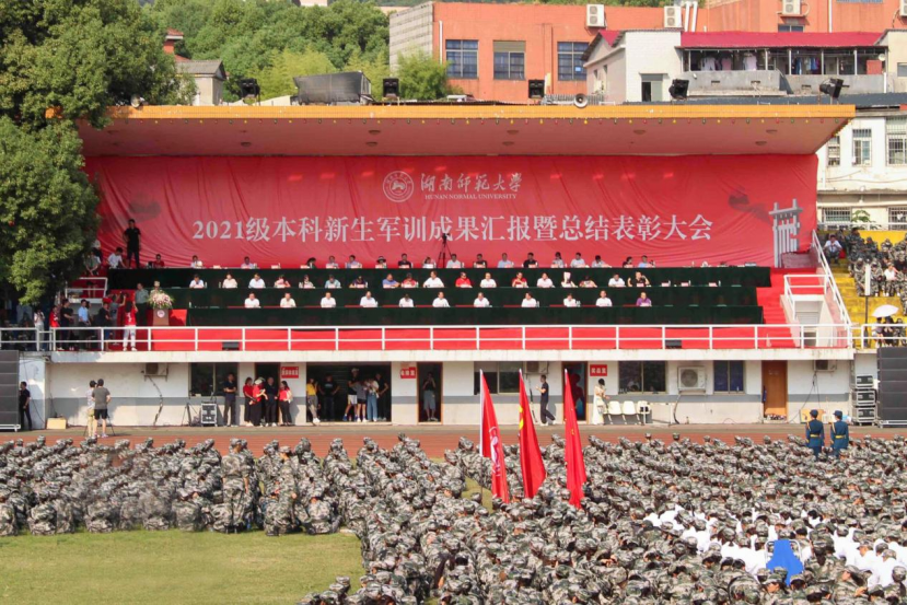 王辉作总结讲话。他代表学校对莅临大会的领导和来宾表示热烈欢迎,对为军训工作付出艰辛努力的全体人员表示诚挚问候,对圆满完成军训任务的2021级本科新生致以热烈祝贺。他对同学们提出三点希望:一是希望大家强化使命意识,心怀国之大者,提升综合素质,练就过硬本领,用实际行动践行“请党放心,强国有我”的青春誓言;二是希望大家养成自律品格,铭记师大人的奋进传统,不弃微末、不舍寸功;三是希望大家练就健康身心,及时调整,用乐观自信的心态来面对学习和生活的低谷与高峰,用饱满的生命状态和强健的体魄去拥抱美好的未来。最后他强调,当前疫情防控形势依然严峻,希望同学们在假期一定要遵守学校防控工作相关规定。