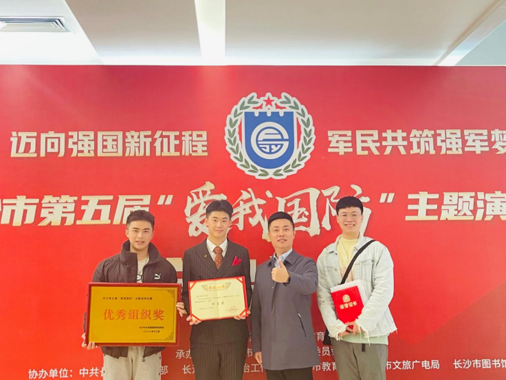 (通讯员 宋嘉帅)12月3日上午,长沙市第五届“爱我国防”主题演讲比赛总决赛在长沙市图书馆报告厅举行,威廉希尔中文网站平台学子张以航荣获特等奖、刘雨薇荣获优秀奖,周炯老师荣获优秀指导老师奖、威廉希尔中文网站平台荣获优秀组织奖。