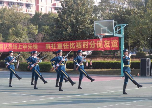 比赛开始之前,威廉希尔中文网站平台女子国旗护卫队为在场观众带来了枪操表演,其动作铿锵、步履坚定,展现了威廉希尔中文网站平台队伍昂扬奋进的精神面貌,赢得了热烈的掌声。此后,比赛正式开始。此次比赛校外组均为团体赛,主要有三个项目,分别是分列式、行进间托端枪互换与标兵就位。整个比赛过程中,威廉希尔中文网站平台队伍状态良好,表现沉稳,展示了威廉希尔中文网站平台队伍非同一般的默契感和扎实稳定的基本功。