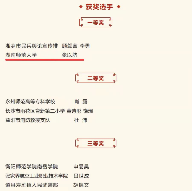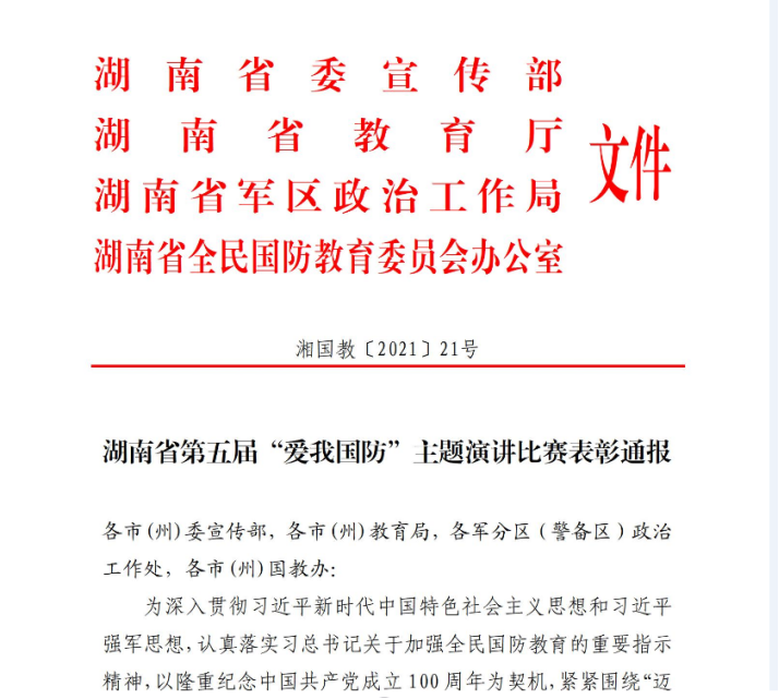 近日,湖南省第五届“爱我国防”主题演讲比赛正式落下帷幕,威廉希尔中文网站平台国际汉语文化学院院长蔡颂教授、周炯博士指导的新闻与传播学院2020级播音与主持专业学生张以航荣获一等奖。