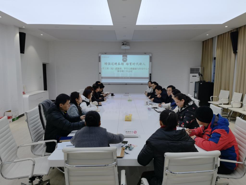 各中心、科室负责人汇报了新学期工作规划。学生工作部(处)、武装部、心理健康教育与咨询中心全体职工参加会议。