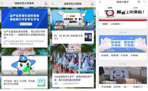 一是加强学生思想引领,充分做好疫情防控宣传工作。通过威廉希尔中文网站平台星网、湖师小团子等平台及时发布《威廉希尔中文网站平台辅导员倡议书》、“疫情防控rap”“湖师大春季在校防疫指南”,推出“星夜读”等防疫专题栏目,深入挖掘奋战在抗疫一线的辅导员事迹,广泛宣传报道,引导广大师生坚定必胜信心、科学自我防护,共同战胜此次疫情防控斗争。