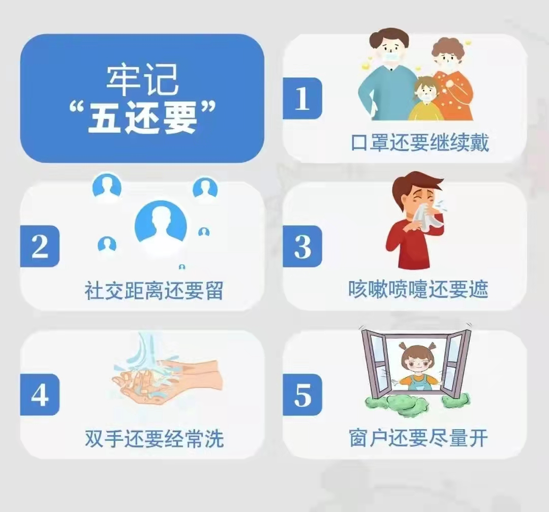 1.请同学们科学佩戴口罩。在室内室外等人群密集场合要佩戴口罩,特别是教室内上课要坚持正确佩戴口罩,汗湿后要及时更换,坚决做到疫情不退、口罩不摘。