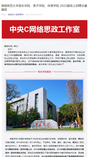 音乐学院通过院官网、院微信公众号等宣传矩阵及时发布工作动态和疫情防控信息,将疫情防控的政策宣传和工作动态等及时发布至工作一线,开展2022届毕业生线上招聘会、全力筹备研究生线上复试等,保证线上就业工作和教学工作的正常进行,让学生暖心,让家长放心。