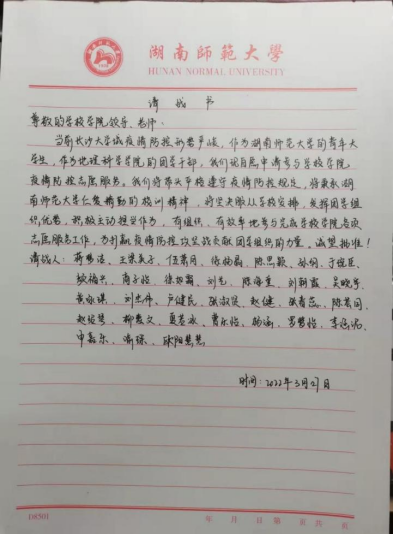 此次管控期间,共计有66名学生自愿报名服务学校、学院抗疫志愿服务,不仅负责了年级、班级的信息摸排,居寝监测等工作,还力所能及的参与了校级层面的防疫志愿活动。同时,同学们以党支部和团学组织的形式递交请战书,鼓舞士气,提振人心,树立了良好的学生防疫榜样。