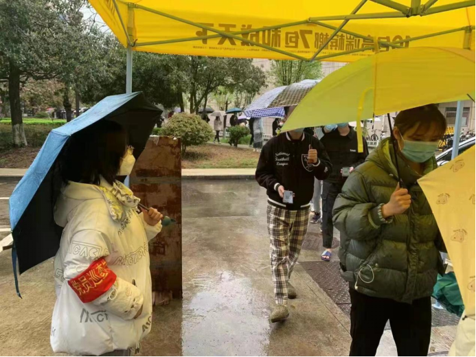 党旗引领聚合力,站在抗疫第一线。一直以来,我院领导班子高度重视疫情防控工作,多次召开会议部署强调防控事宜。封闭管理前便将党支部“双岗一扶”特色工作的重心转移到疫情防控上,在楼栋入口、宿舍、教室设岗巡查,监督同学们口罩佩戴、入楼扫码情况。封校之初,学院紧急召开疫情防控紧急工作会议,部署开展了“疫情阻击战,党员在行动”主题活动。一方面,向全院学生党员发出了“站在抗疫第一线”倡议书,号召党员同志与广大群众戮力同心、团结协作。党员同志们积极响应,提交了数份助力抗疫的详细方案;另一方面,为配合学校全员核酸检测工作顺利进行,本科生党支部踊跃报名,组成志愿服务队投身抗疫一线,承担起二里半校区、天马校区以及周边社区防疫工作中的现场秩序维护、文明劝导等工作,保证检测现场安全、高效地进行。