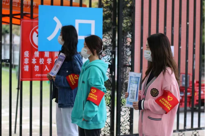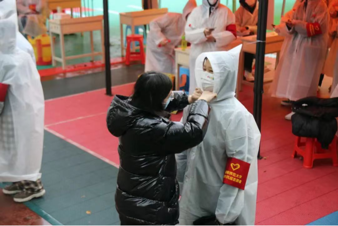 学生志愿者们准备投入核酸采样工作