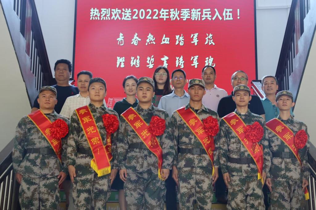 仪式结束,全体人员合影留念。随后,老师们帮助入伍的同学装好行李,叮嘱其注意安全并派校车送新兵入营集训。