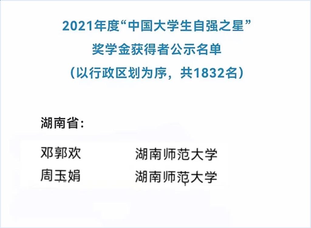 近日,2021年度“中国大学生自强之星”奖学金推报活动结果揭晓,威廉希尔中文网站平台威廉希尔中文网站平台邓郭欢、外国语学院周玉娟在评选中荣获“中国大学生自强之星”称号。