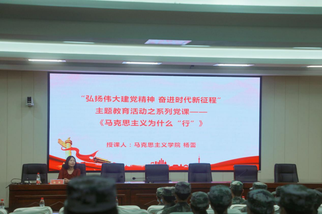 仪式结束后,女子国旗护卫队(教官队)党支部开展了“弘扬伟大建党精神 奋进时代新征程”主题教育活动,马克思主义学院青年教师杨蕾为同学们讲授主题为《马克思主义为什么“行”》的党课,勉励青年学子更好地聆听时代声音,进一步彰显马克思主义的魅力,续写马克思主义中国化时代化的壮丽篇章和马克思主义为什么“行”的光辉答卷。