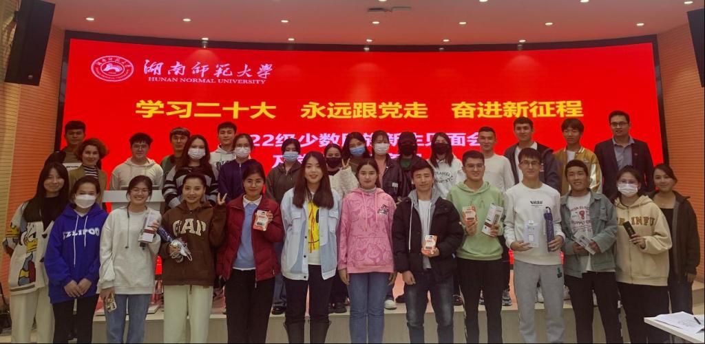 (通讯员 马雨欣)11月20日下午,学生工作部(处)在励德楼网络思政中心报告厅举行了一场迟来的特殊迎新见面会,欢迎从新疆维吾尔自治区、西藏自治区来校报到的少数民族新生,并开展了“学习二十大,永远跟党走,奋进新征程”党的二十大精神学习交流会暨党史知识竞赛。学生工作部(处)少数民族专职辅导员努尔买买提、努热曼姑丽、卡的力艳木及各学院少数民族新生代表参会。