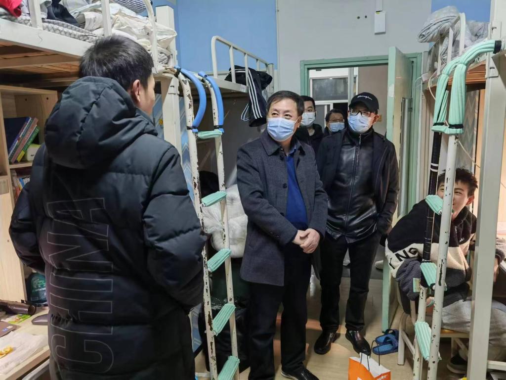 在走访中,王辉与学生亲切交谈,听取学生对学校各方面工作的意见和建议,详细查看寝室卫生环境、寝室安全,叮嘱同学们养成良好个人生活习惯,创造良好的学习环境和氛围;他进一步提醒同学们加强宿舍安全监管,注意财物安全、用水用电安全、人身安全,加强内务清洁管理,保持宿舍环境卫生,营造“安全、舒适、文明”的住宿环境;他嘱托各寝室学生党员、学生干部、寝室长负起责任,切实加强宿舍安全隐患的防范和自查工作,做好寝室内务与隐患自查,禁止违章电器、超载用电、私拉电线等情况,严防安全事故发生。