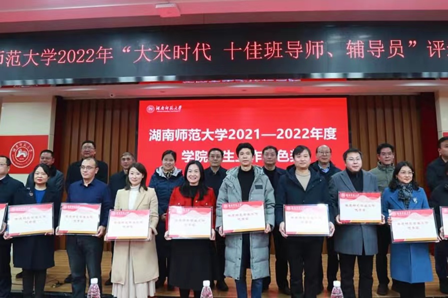 向发意宣布2021-2022年度 “大米时代·十佳班导师”、“大米时代·十佳辅导员” 、学生工作特色先进单位评选结果,全体评委为获奖单位及个人颁奖。