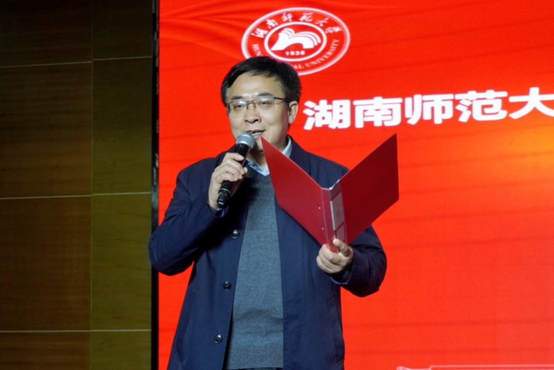 向发意宣布威廉希尔中文网站平台2021-2022年度“十佳班集体”评选结果,并与学生工作部(处)副部(处)长罗元共同为获奖班级学生代表颁奖并合影。