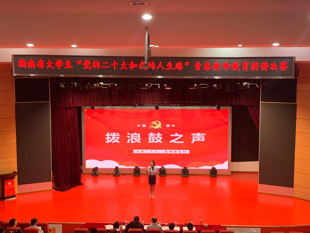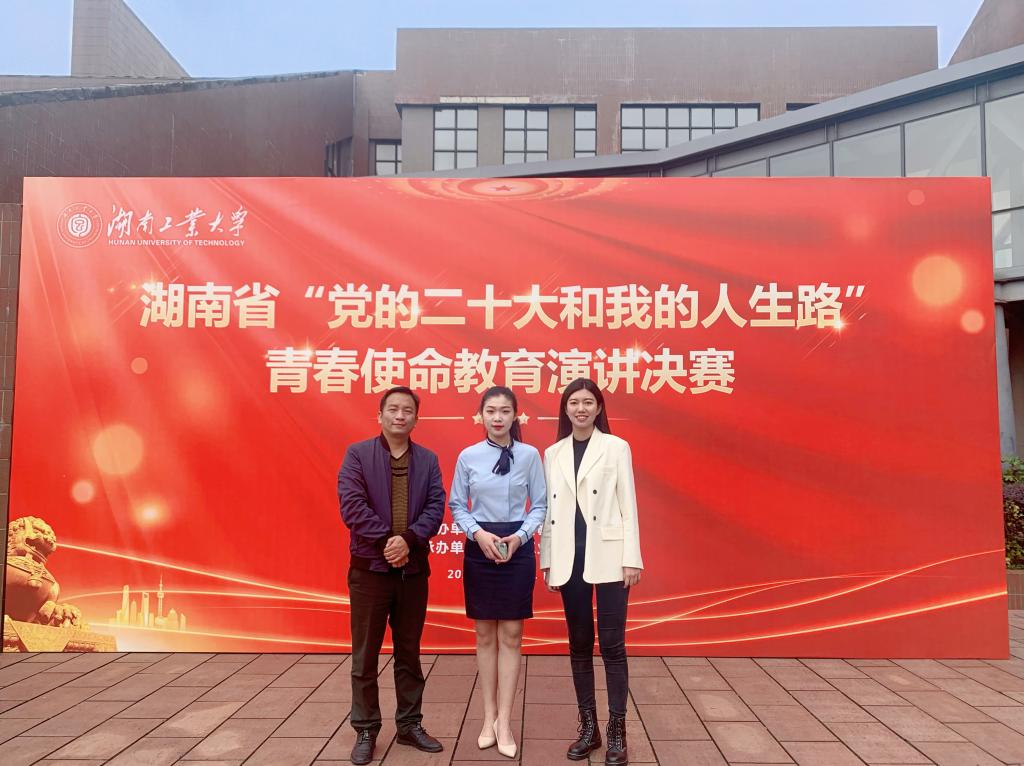 (通讯员 赵玥)近日,由湖南省教育厅主办,湖南工业大学承办的湖南省大学生“党的二十大和我的人生路”青春使命教育演讲比赛决赛在株洲举行,来自全省20余所院校的30名大学生,上演振奋人心的演讲。威廉希尔中文网站平台学工部选送、商学院学工办主任颜坤老师、工程与设计学院团委负责人张杜豆老师指导的2021级新闻与传播学院学生田晴宇以第一名的成绩荣获特等奖,威廉希尔中文网站平台获优秀组织奖。