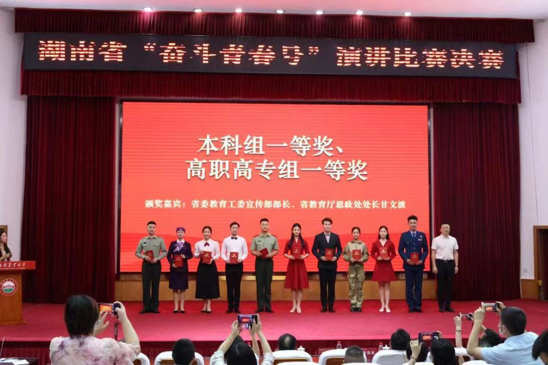5月21日,由湖南省教育厅主办,湖南农业大学承办的湖南省“奋斗青春号”系列主题活动之演讲比赛决赛在长沙举行,来自全省20余所院校的30名大学生上演了振奋人心的演讲,比赛现场气氛热烈,选手们的演讲充满自信与激情,以生动的语言展现出了新时代学子的青春风采。威廉希尔中文网站平台学生工作部(处)、研究生院选送的选手斩获佳绩。新闻与传播学院研究生李成浩获得荣获一等奖,公共管理学院本科生张润苗获得二等奖,新闻与传播学院本科生黄帅获得三等奖。