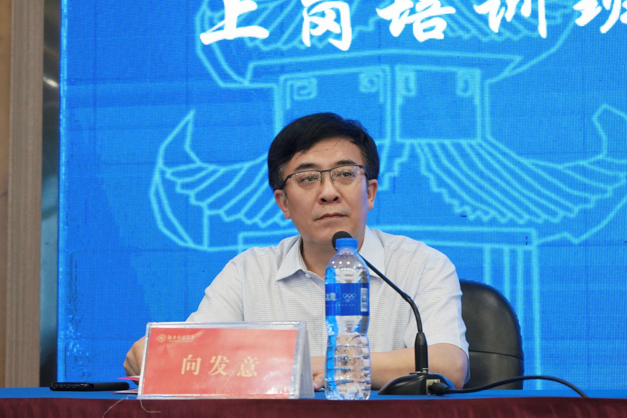 向发意宣读《关于准予徐智欣等115名2023年度湖南省普通高校辅导员上岗培训班学员结业的决定》和《关于授予蔡明旭等17人“湖南省普通高校辅导员上岗培训班优秀学员”荣誉称号的决定》。参会领导为学员颁发结业证书和优秀学员证书。