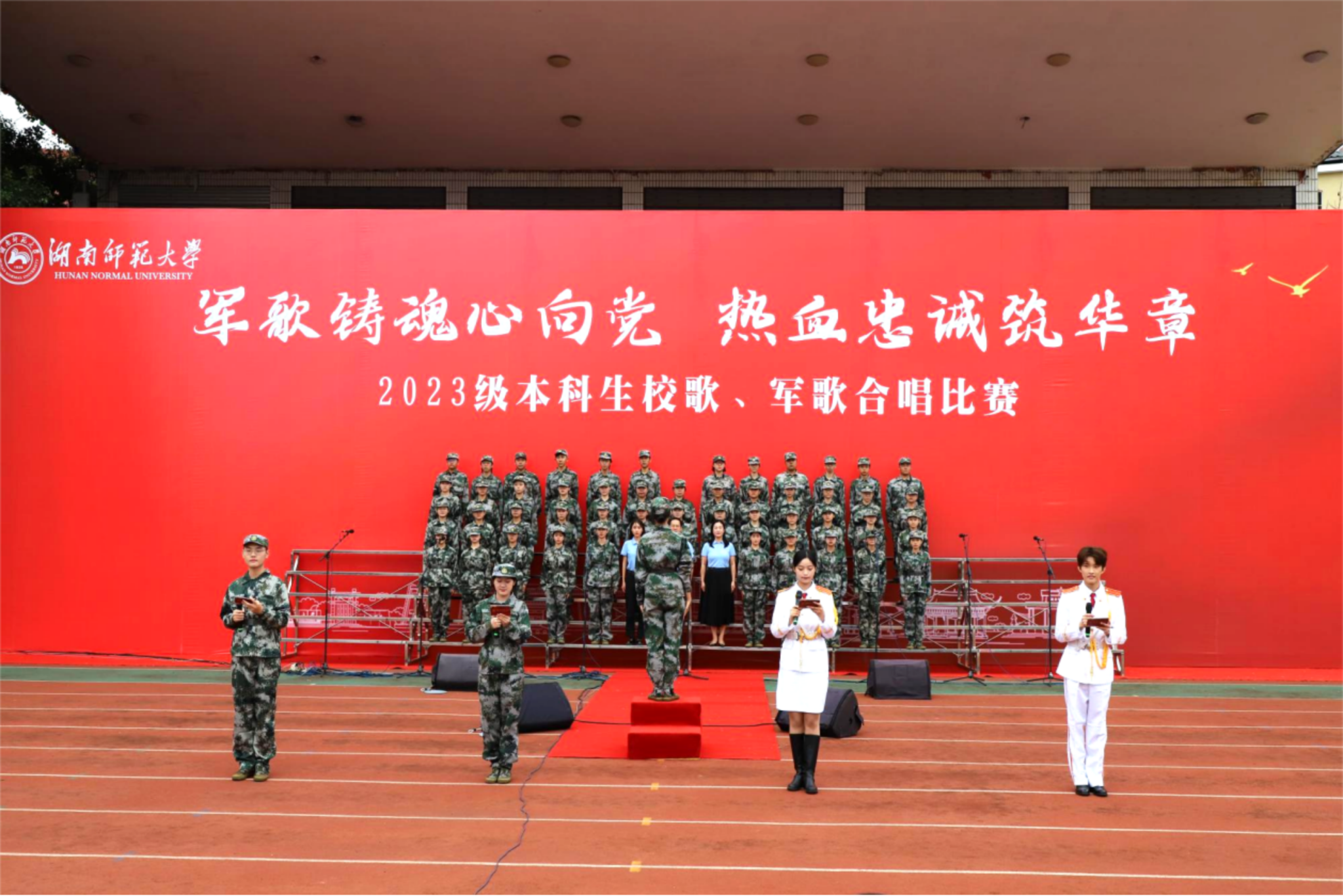 (通讯员 王芷彤 何莉莉 何一苇)9月25日下午,威廉希尔中文网站平台2023级本科生“军歌铸魂心向党,热血忠诚筑华章”校歌、军歌合唱比赛于北院校区田径场顺利举行。来自22个学院的参赛队伍以歌声为载体,凝聚青春之火,追寻时代之光,用青春最嘹亮的歌声唱响热血旋律。