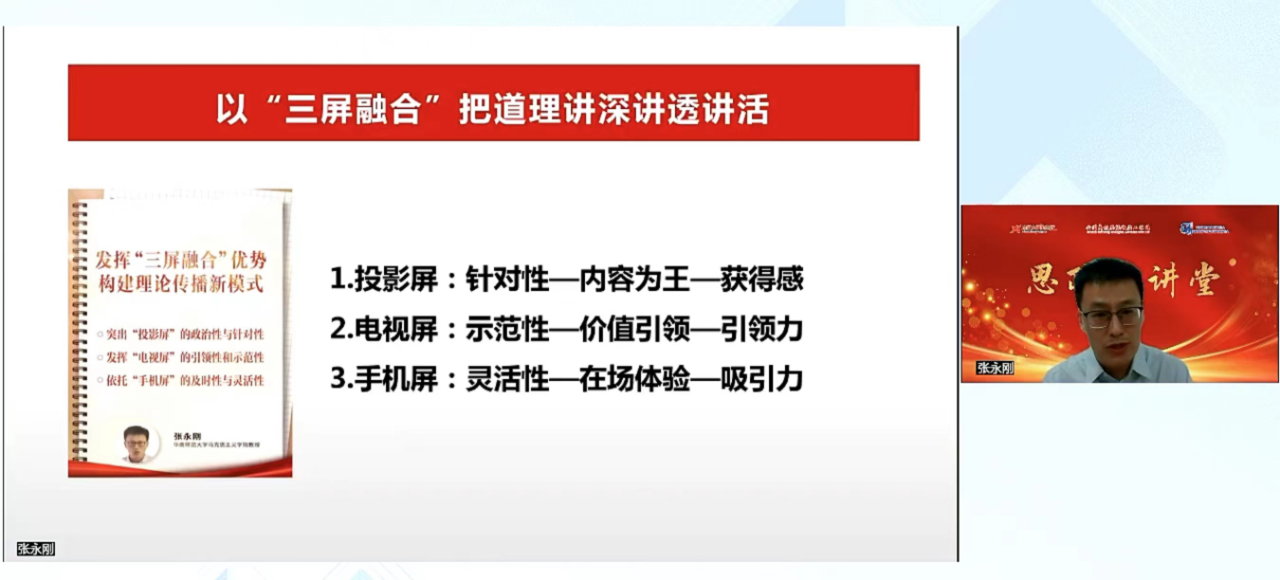 以灯塔领航培根铸魂,以融媒技术打造思政品牌,10月18日晚,全国高校思政网邀请华南师范大学马克思主义学院教授张永刚做客第二期“思政大讲堂”系列直播,面向全国高校思政工作者作题为《融媒体时代如何把道理讲深讲透讲活》专题讲座并在线答疑解惑。学生工作部(处)组织各学院辅导员通过线上线下等形式观看了直播,并通过拍照打卡、撰写学习心得等方式分享了观后感悟。