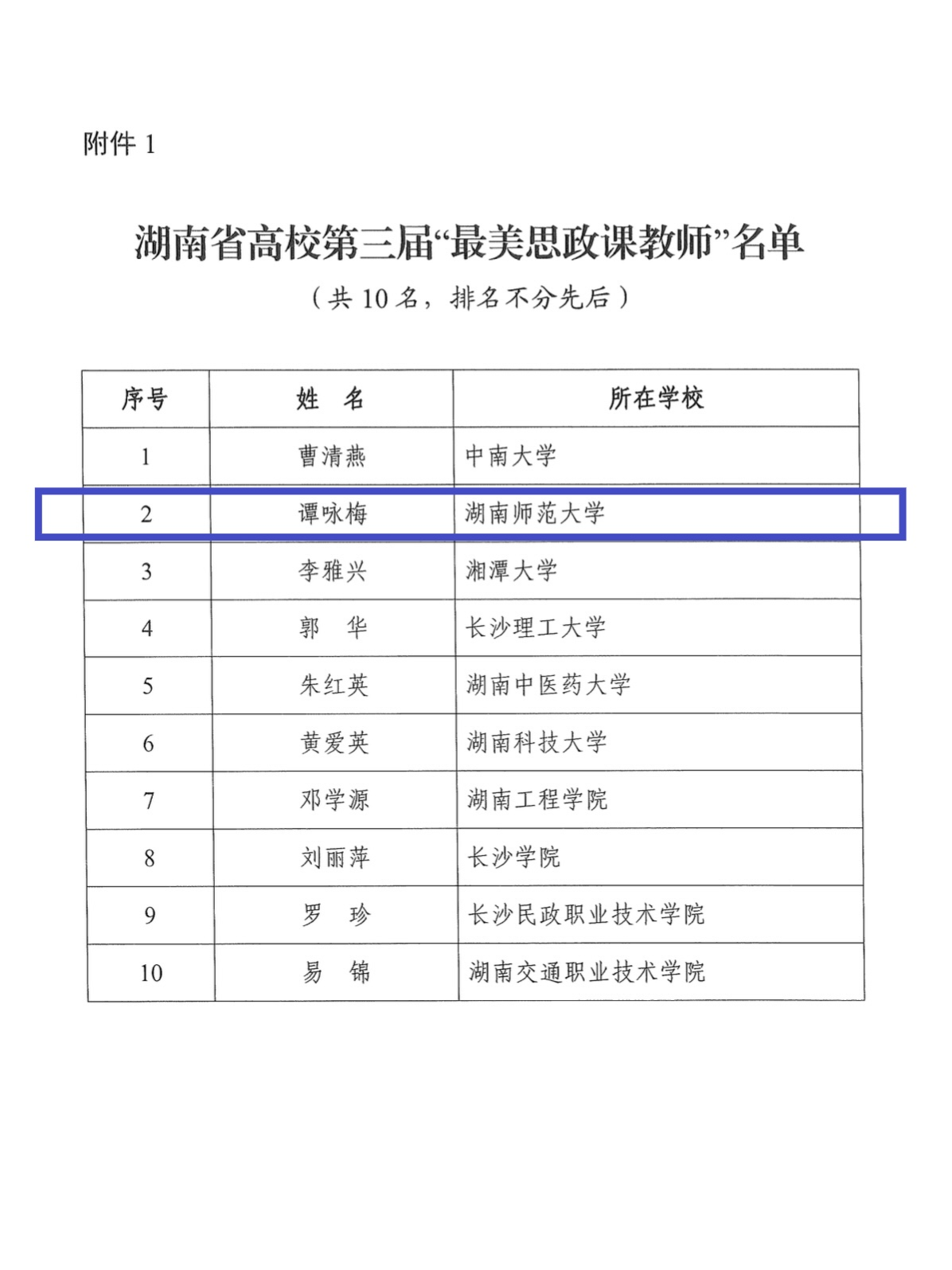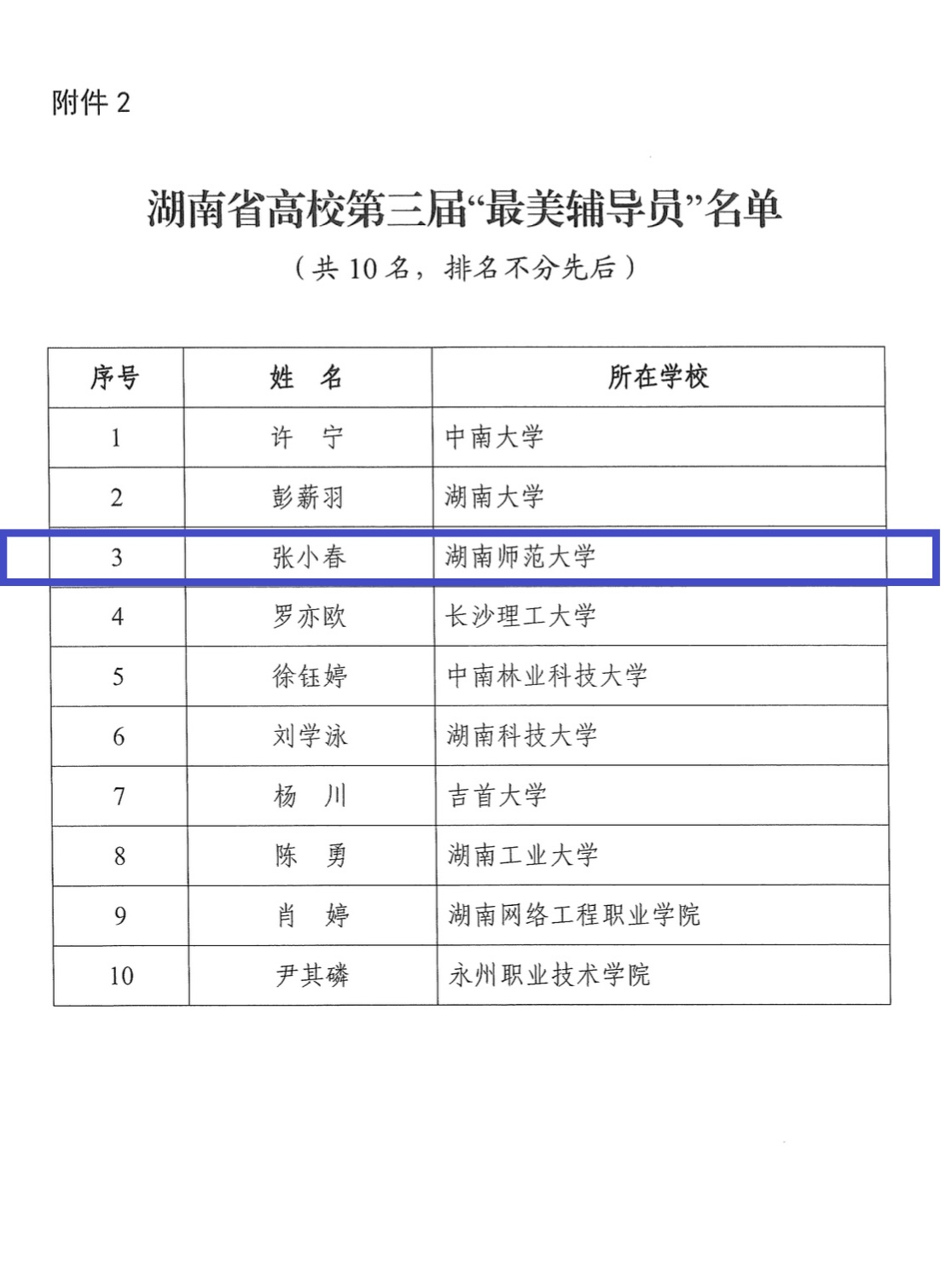 (通讯员 崔蓝心)近日,由省委宣传部、省委教育工委、省教育厅联合开展的湖南省高校第三届最美思政课教师、最美辅导员、最美大学生推选活动结果公布。威廉希尔中文网站平台马克思主义学院谭咏梅老师荣获“最美思政课教师”称号,新闻与传播学院党委副书记张小春老师荣获“最美辅导员”称号。