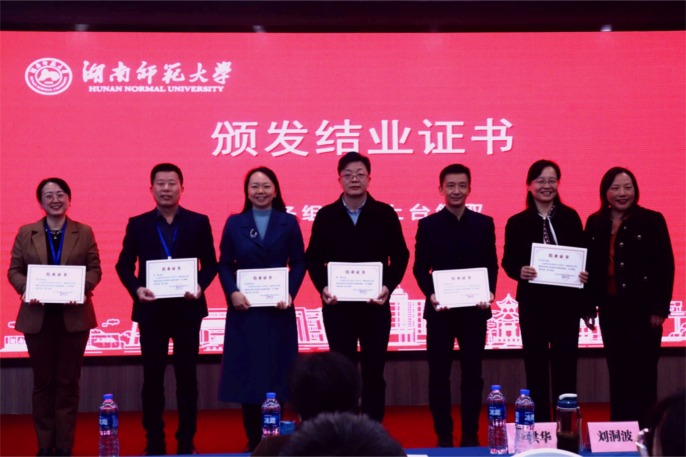 湖南中医药大学宣传统战部常务副部长章小纯为各小组代表颁发结业证书,湖南大学党委宣传部常务副部长成黎明为优秀学员颁发荣誉证书。