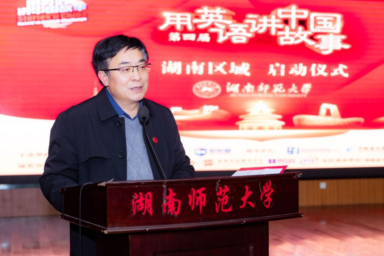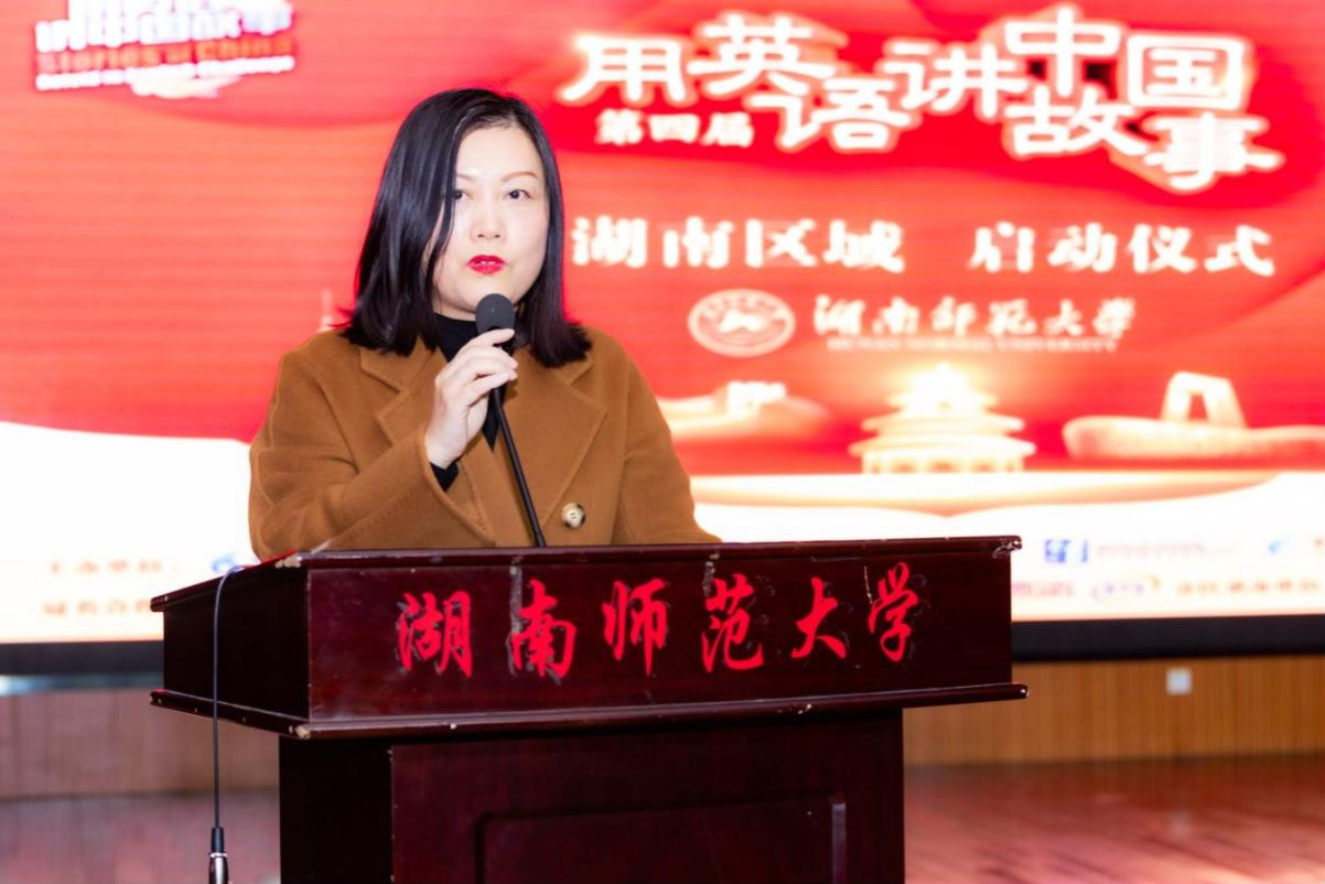 答辩会开始前,现场举行“用英语讲中国故事”启动仪式。詹再宏上台致辞,她对老师和同学们的到来表示热烈欢迎,并分享了用英语讲好中国故事的感悟和体会。随后他与向发意、学生代表共同按下开幕仪式启动球,庆祝活动顺利启动。