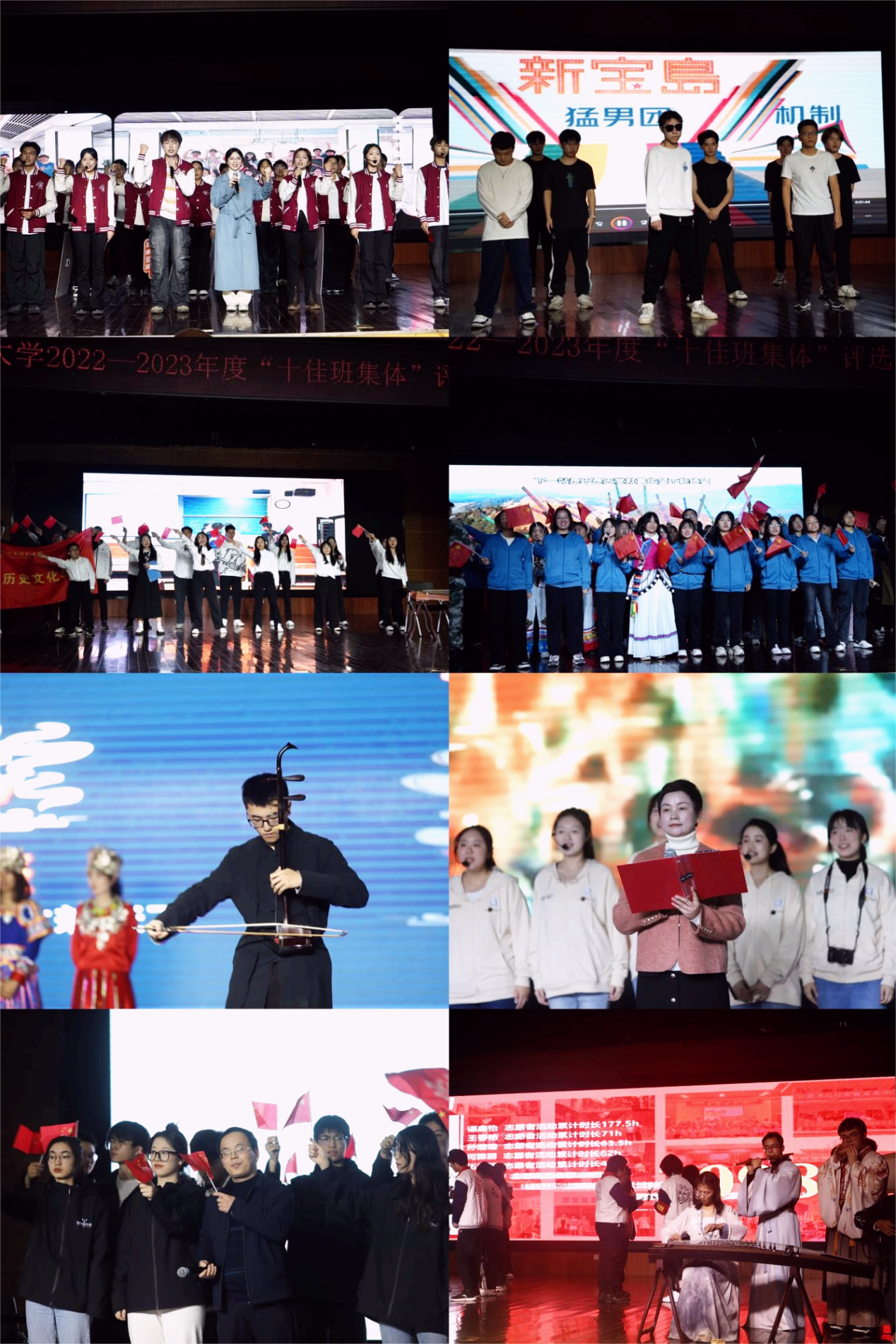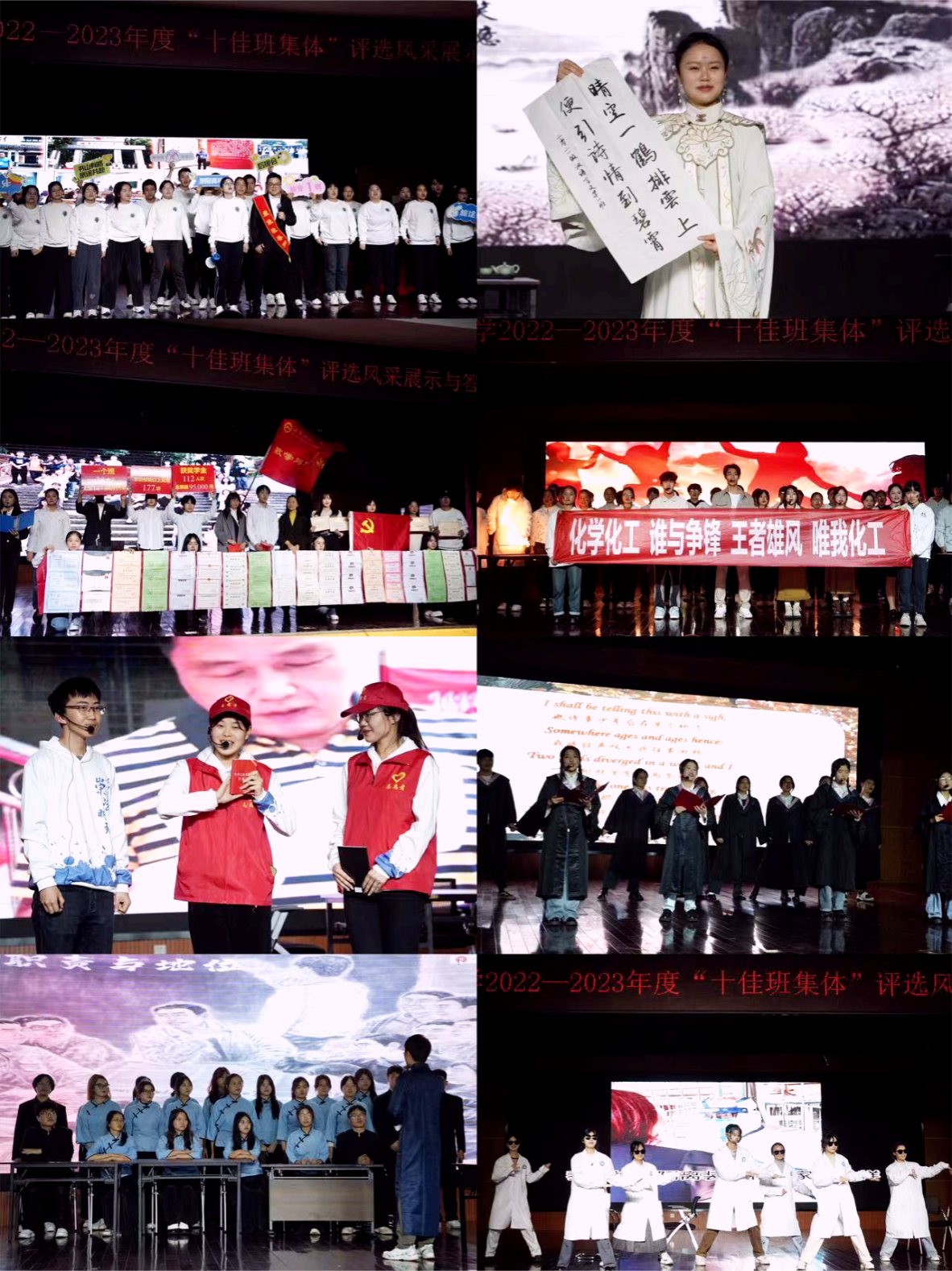 班级风采展示环节中,各学院根据学科专业特色,通过歌舞表演、情景剧、诗朗诵、武术舞蹈等精彩纷呈的表演展现了各参赛班级的良好风貌和奋斗不息的青春底色。