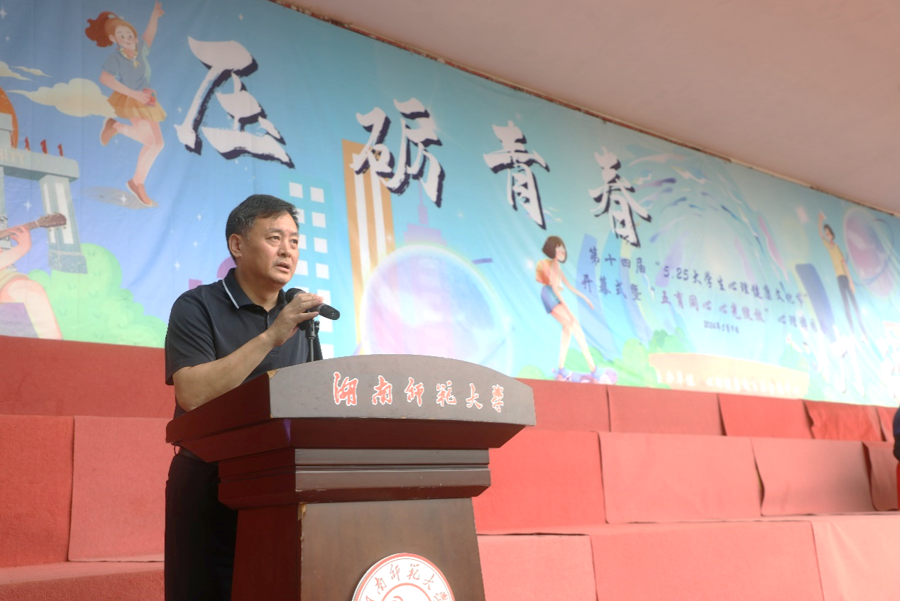 (记者 李昕萌 李慈添 通讯员 刘佳怡)5月9日下午,威廉希尔中文网站平台第十四届“5·25”大学生心理健康文化节开幕式暨心理游园会在二里半校区田径场举行,副校长王辉出席活动。