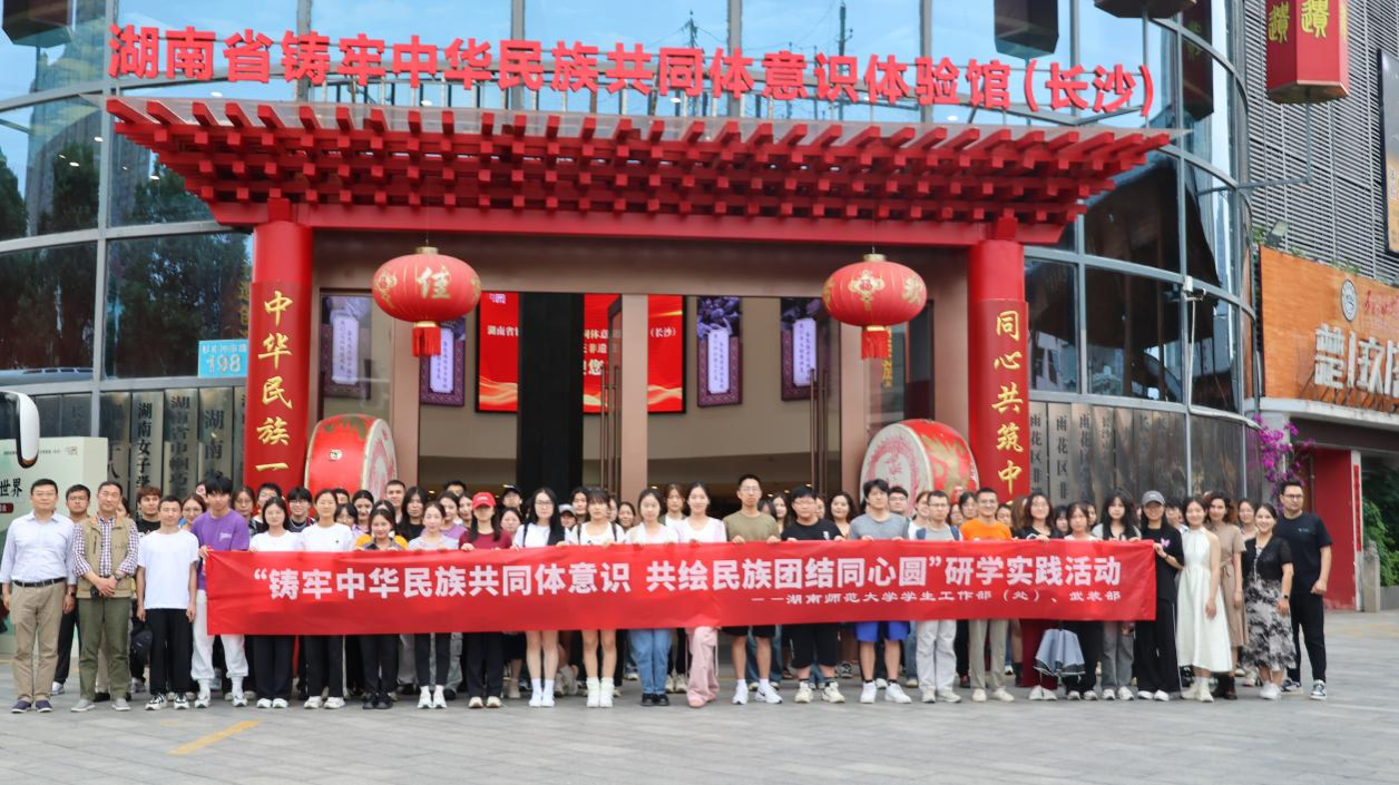 为深入学习贯彻习近平总书记关于加强和改进民族工作的重要思想,有形有感有效铸牢中华民族共同体意识,5月9日,由学生工作部(处)副部长罗元带队,组织各民族学生代表(含港澳台)80余人前往湖南省铸牢中华民族共同体意识体验馆开展沉浸式研学实践活动。