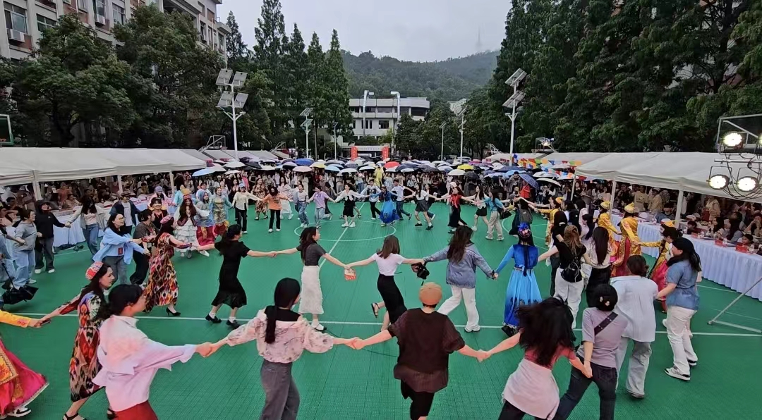 本届文化节以“中华民族一家亲 团结奋进新时代”为主题,共分为开幕式、文化展示、文艺演出三个环节。文化展示环节设置了二十个风采展示区,内容涵盖中华民族文化精品展、中华民族美食展以及各民族文化展等,由汉族、哈萨克族、土家族、蒙古族、藏族、彝族、壮族等民族的学生搭起二十余顶帐篷展示多元荟萃的中华文化,生动地展示不同民族的独特风情。本届民族文化节还设置了竹竿舞、跳马脚、投壶等一系列特色游戏,师生通过民族知识问答了解了游戏背后的中华民族文化内涵,切身感受灿烂的中华民族文化。围圈舞蹈环节,各民族学生手牵手,围起同心圆载歌载舞,把此次活动推向一个高潮。