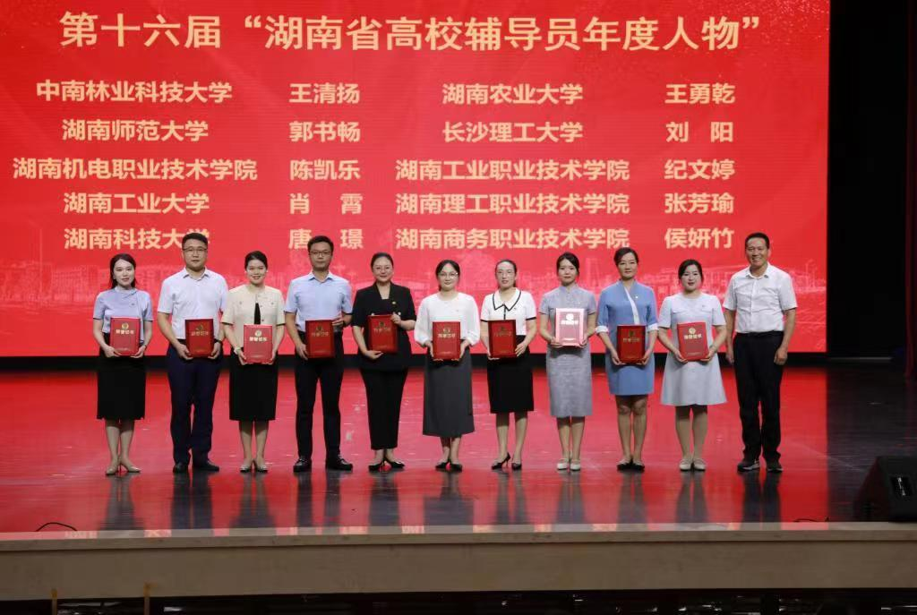 经各高校推荐,省委教育工委组织专家初审公示,并组织现场答辩,共评选出第十六届“湖南省高校辅导员年度人物”10名。经本人申请和学校评审公示,威廉希尔中文网站平台学工部、商学院选送的郭书畅老师喜获该项荣誉。