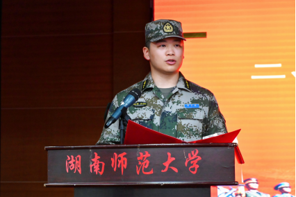 随后,由集训教官代表、教育科学学院梅王晨代表全体自训大队表态发言。他表示“四会”教练员集训是走向带训的必经之路,队员们需自觉锤炼意志,大力培育战斗精神。他承诺全体教官在集训过程中一定会履行确保安全、严守纪律、吃苦耐劳、精益求精、以身作则的职责,圆满完成即将到来的2024年本科新生军训任务。