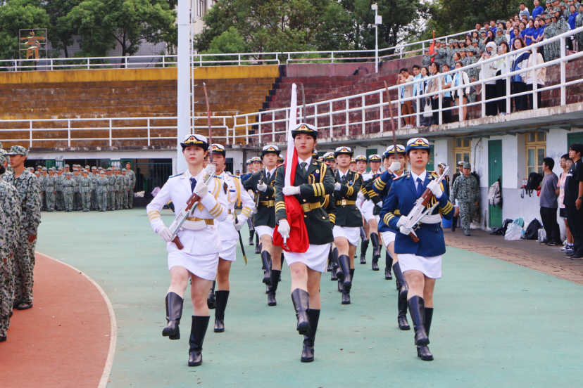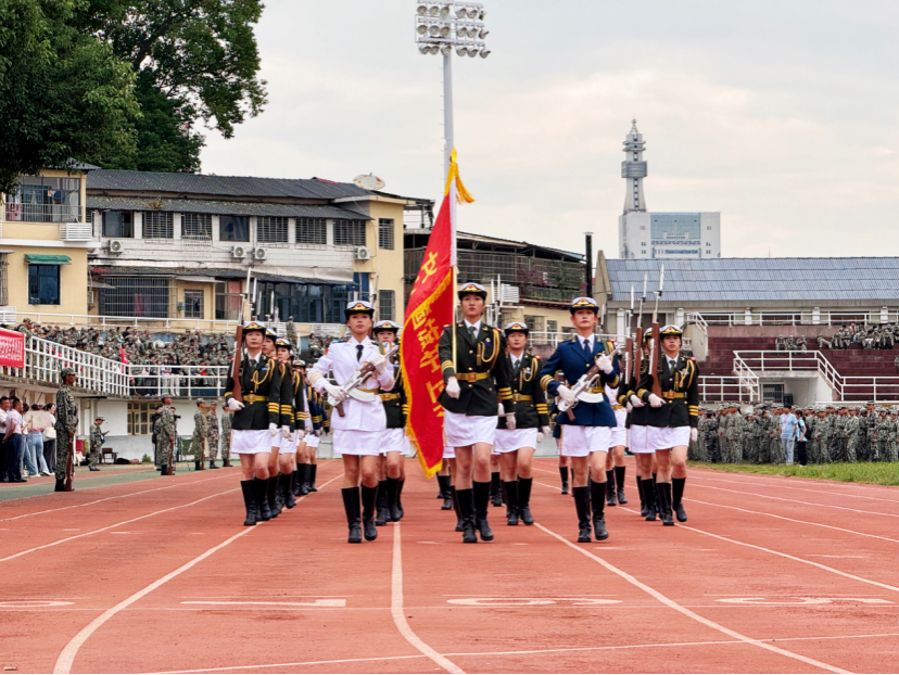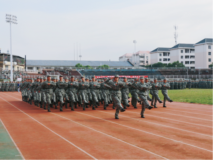 军训成果汇报仪式由女子国旗护卫队指挥长、医学部资绒同学指挥。随着分列式进行曲响起,标兵就位,各学院方阵以饱满的精神面貌和整齐坚定的步伐走过主席台接受检阅,嘹亮的口号声展现威廉希尔中文网站平台莘莘学子的朝气蓬勃与青春活力。
