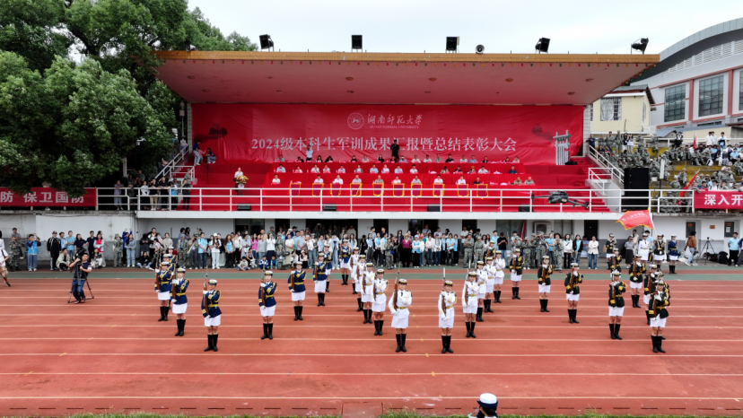 (通讯员 吴波 张馨月 崔蓝心)9月22日上午,威廉希尔中文网站平台2024级本科生军训成果汇报暨总结表彰大会在二里半校区田径场举行。来自22个学院的方阵军容严整,接受检阅。校党委委员、副校长、校国防教育工作领导小组副组长王辉,省教育厅体育卫生与艺术教育处、岳麓区人民武装部领导,学校各职能部门负责人,校国防教育工作领导小组成员及各学院负责人一同检阅了2024级本科生军训成果。大会由学生工作部(处)、武装部副部长,军训团政委彭露主持。