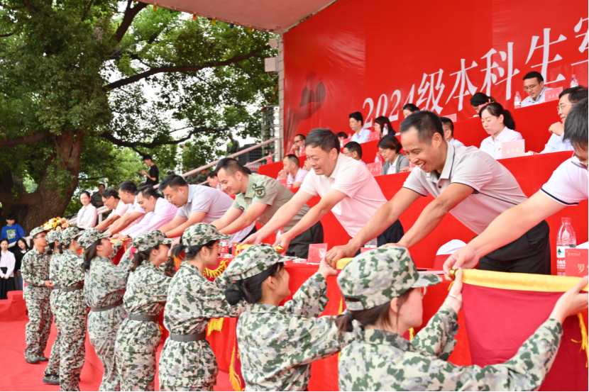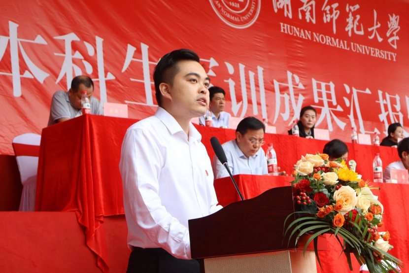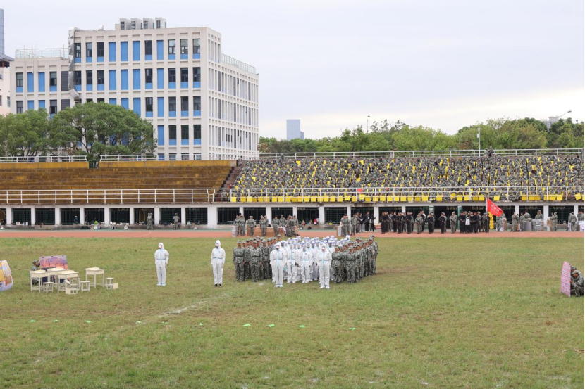 学生工作部(处)、武装部部长,军训团团长陈文雄作军训总结讲话。他代表学校向辛勤付出的全体教官和工作人员表示诚挚感谢和崇高敬意,向在军训中表现突出的集体和个人致以热烈祝贺。他对全体新生提出三点希望:一是要坚定信念,追求卓越;二是要胸怀大局,勇于担当;三是要潜心探索,练就本领。他希望全体新生以奋斗姿态激扬青春,在勇立时代潮头中书写精彩无悔的青春华章。