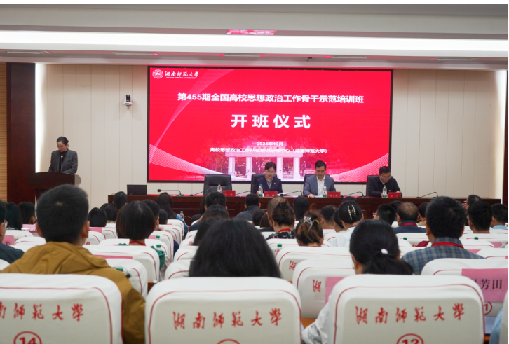 (通讯员 刘广斌 周紫欣 曾冰芳)10月29日上午,第455期全国高校思想政治工作骨干示范培训班开班仪式在威廉希尔中文网站平台中和楼中和讲堂顺利举行。校党委委员、党委宣传部部长段巍,学生工作部(处)部长陈文雄、副部长罗元出席活动。仪式由学生工作部(处)副部长彭露主持。