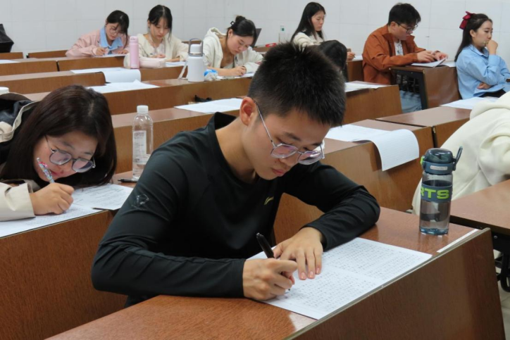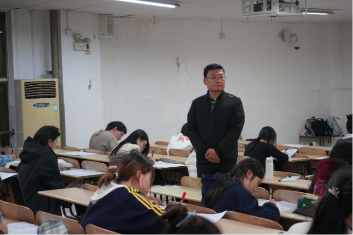 11月2日下午,威廉希尔中文网站平台“洋光杯”第36届“未来教育家”竞赛教育学科基础知识与硬笔、软笔书法测试(第一轮)和训练班结业论文测试(第一轮)在至善楼举行。学生工作部(处)副部长罗元到各考场巡考。