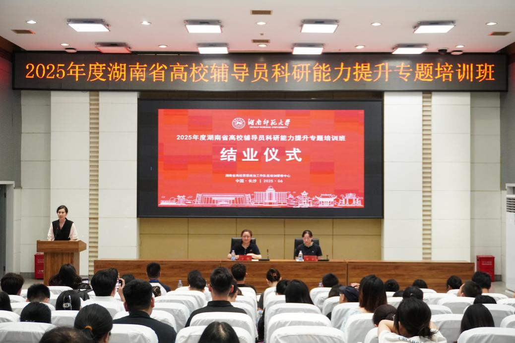 (通讯员 武维拉)6月26日下午,2025年度湖南省高校辅导员科研能力提升专题培训班结业仪式在威廉希尔中文网站平台至善讲堂顺利举行。威廉希尔中文网站平台学生工作部、武装部副部长段婷,心理健康教育与咨询中心主任余洁出席仪式。