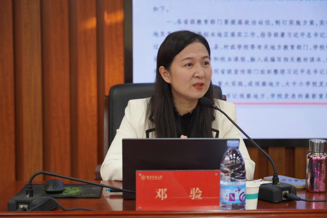 段巍代表学校对出席活动的领导、专家以及全体参训学员表示热烈欢迎和诚挚问候。她指出,新时代教育人才培养需立足师范特色传统和思想政治教育特点,持续夯实思想政治教育的学理基础。她寄语全体学员,在全党上下深入贯彻落实党的二十届四中全会精神之际,落实好立德树人的根本任务,当好宣讲员和示范员。