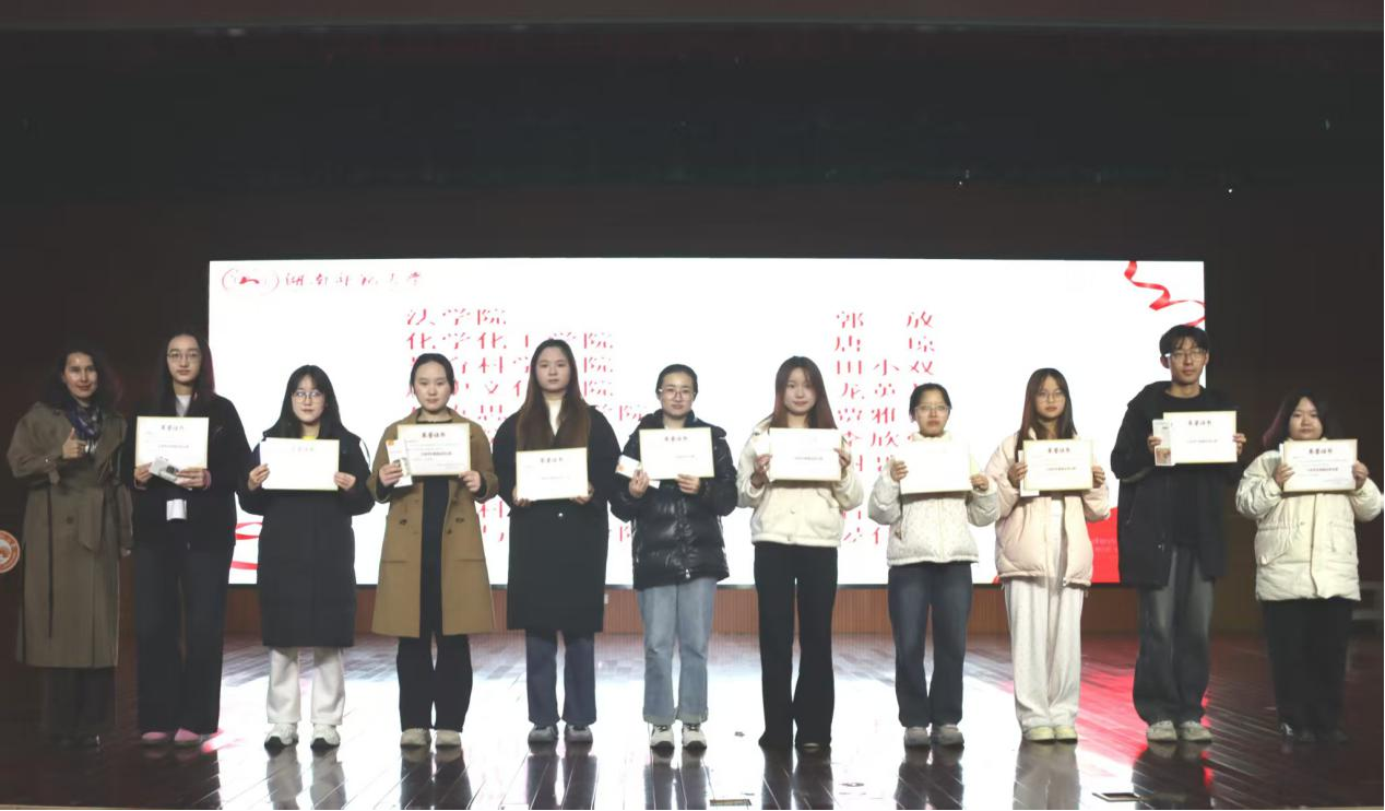 首先,学生资助管理中心老师对2025年度资助宣传大使活动相关情况进行了简要回顾总结,为受表彰的“十佳学生资助宣传大使”颁发了荣誉证书和奖品。