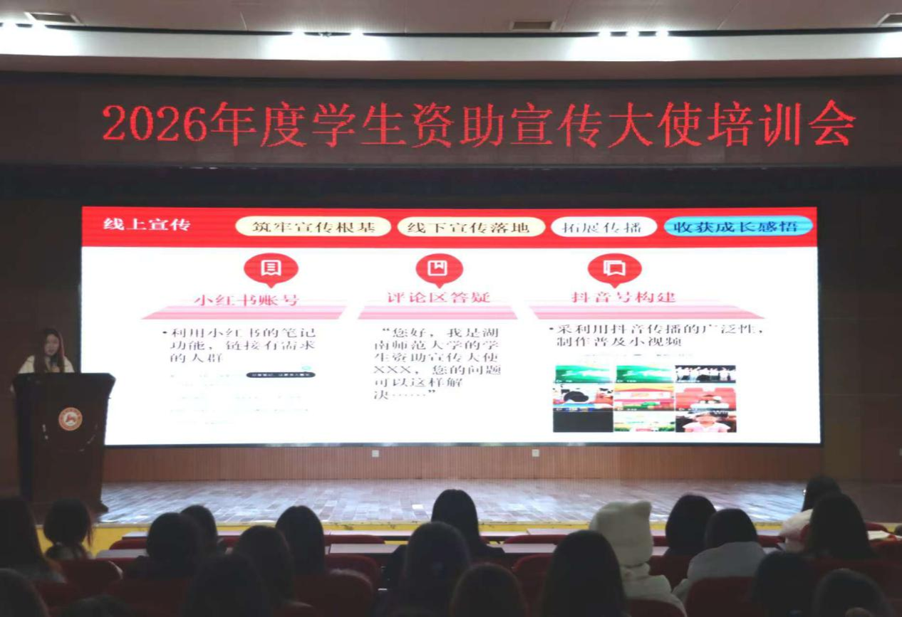 (通讯员 李珂 黄鹏程)12月18日,威廉希尔中文网站平台2026年度学生资助宣传大使培训会在励德楼学生活动中心举行,活动由学生工作部学生资助管理中心组织,各学院2026年新选聘学生资助宣传大使和2025年“十佳学生资助宣传大使”参加此次活动。