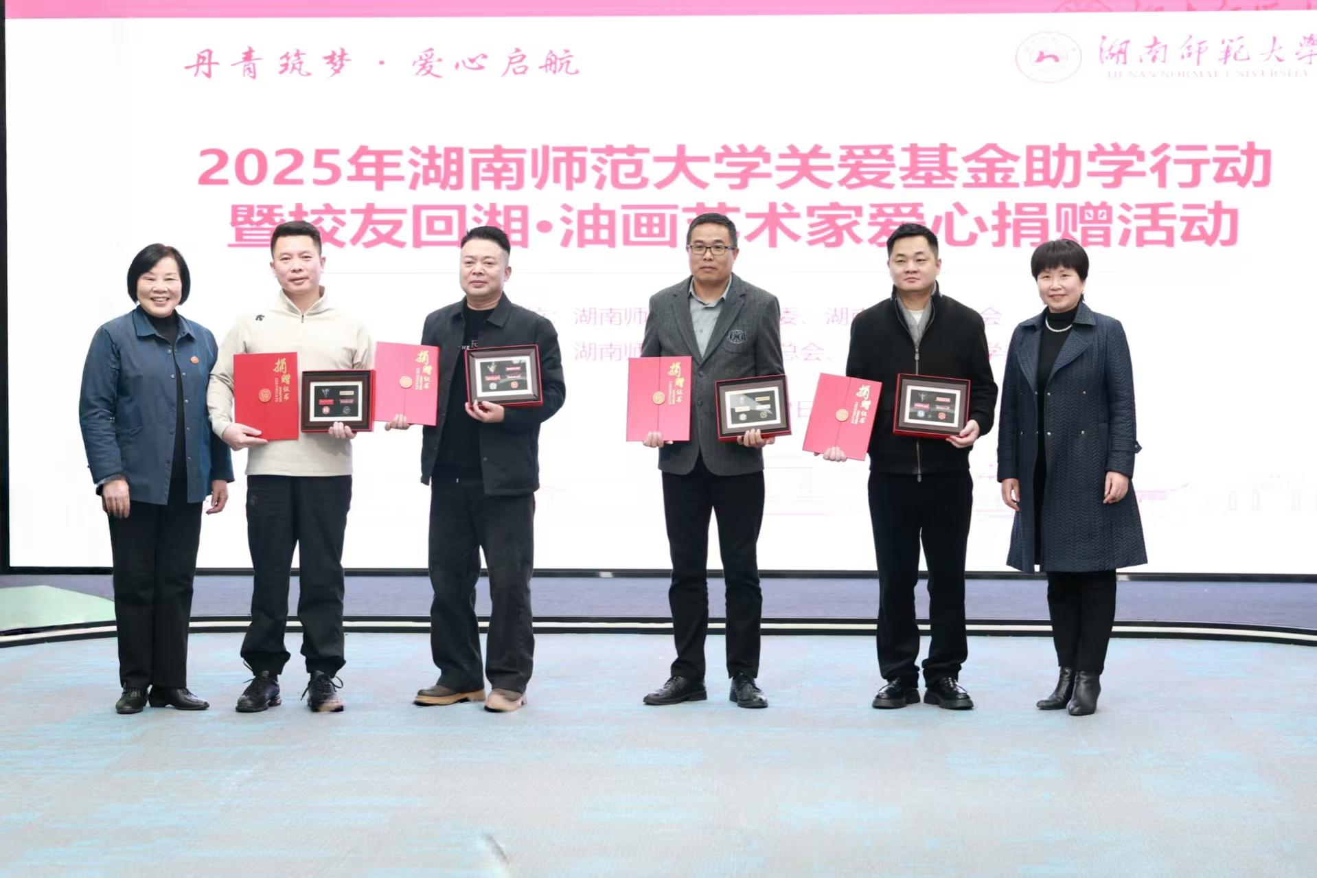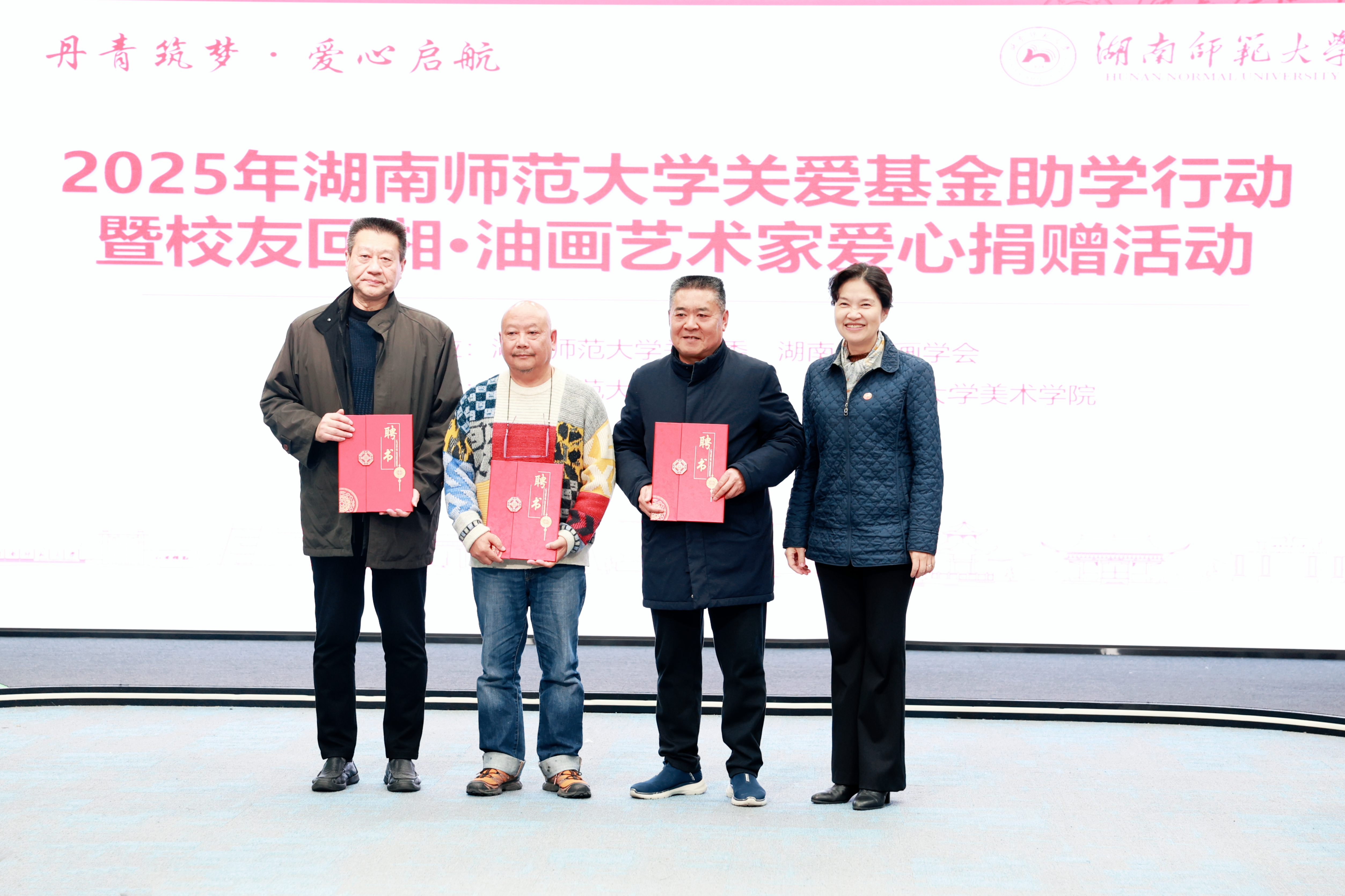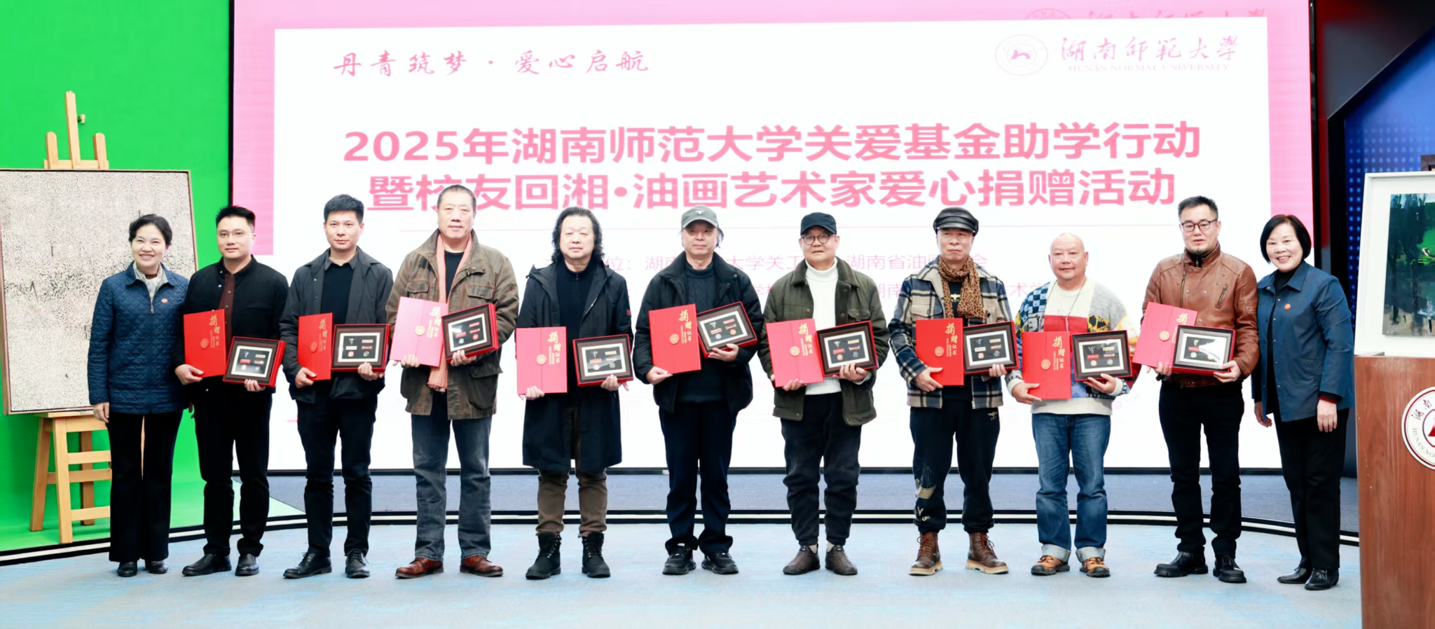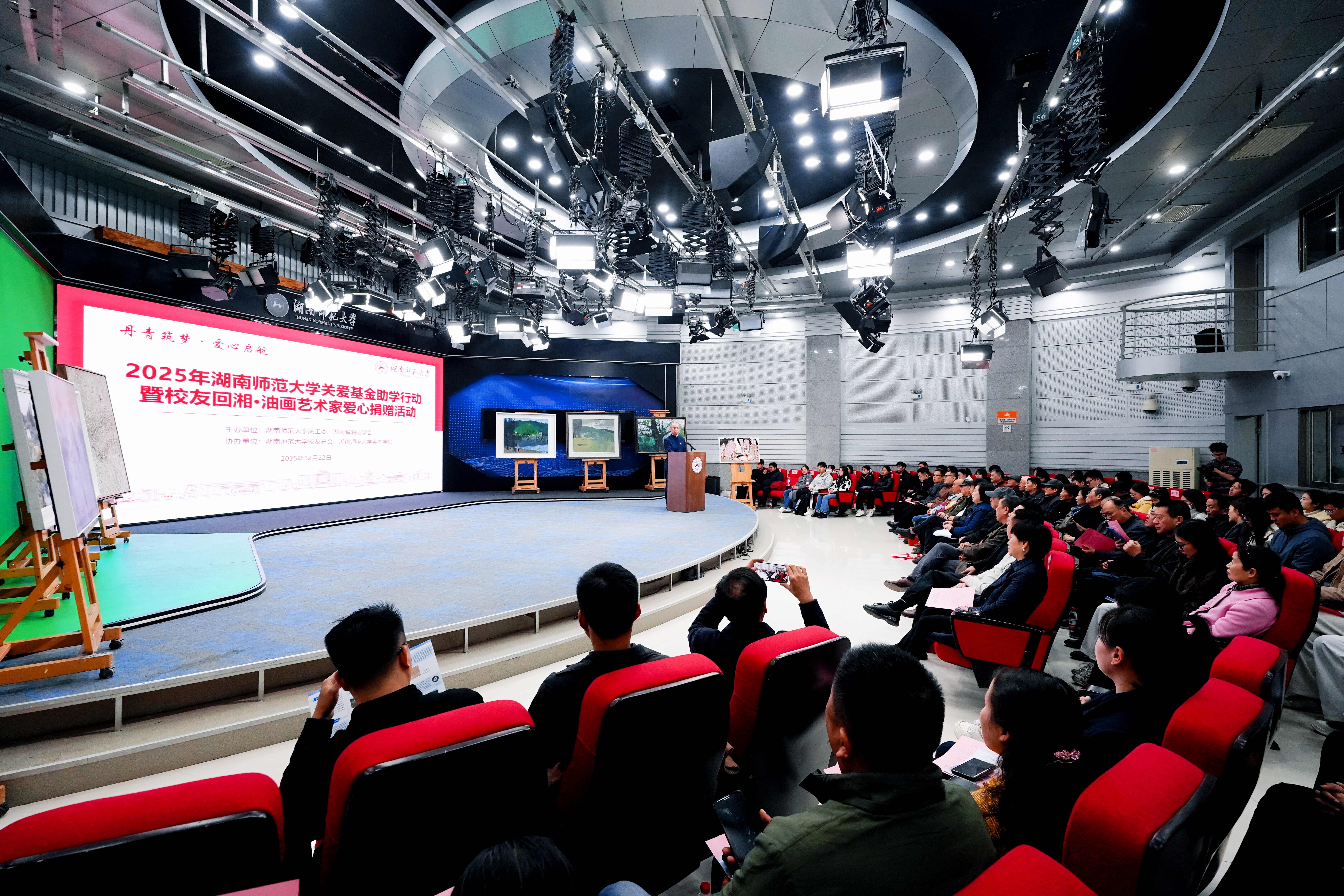 12月22日下午,由校关工委、湖南省油画学会主办,校友总会、美术学院协办的“丹青筑梦爱心启航”2025年威廉希尔中文网站平台关爱基金助学行动暨校友回湘•油画艺术家爱心捐赠活动在威廉希尔中文网站平台融媒体中心展播厅举行,校党委副书记、关工委主任段巍,关工委常务副主任徐书华出席活动。离退休处负责人尹建新主持活动。